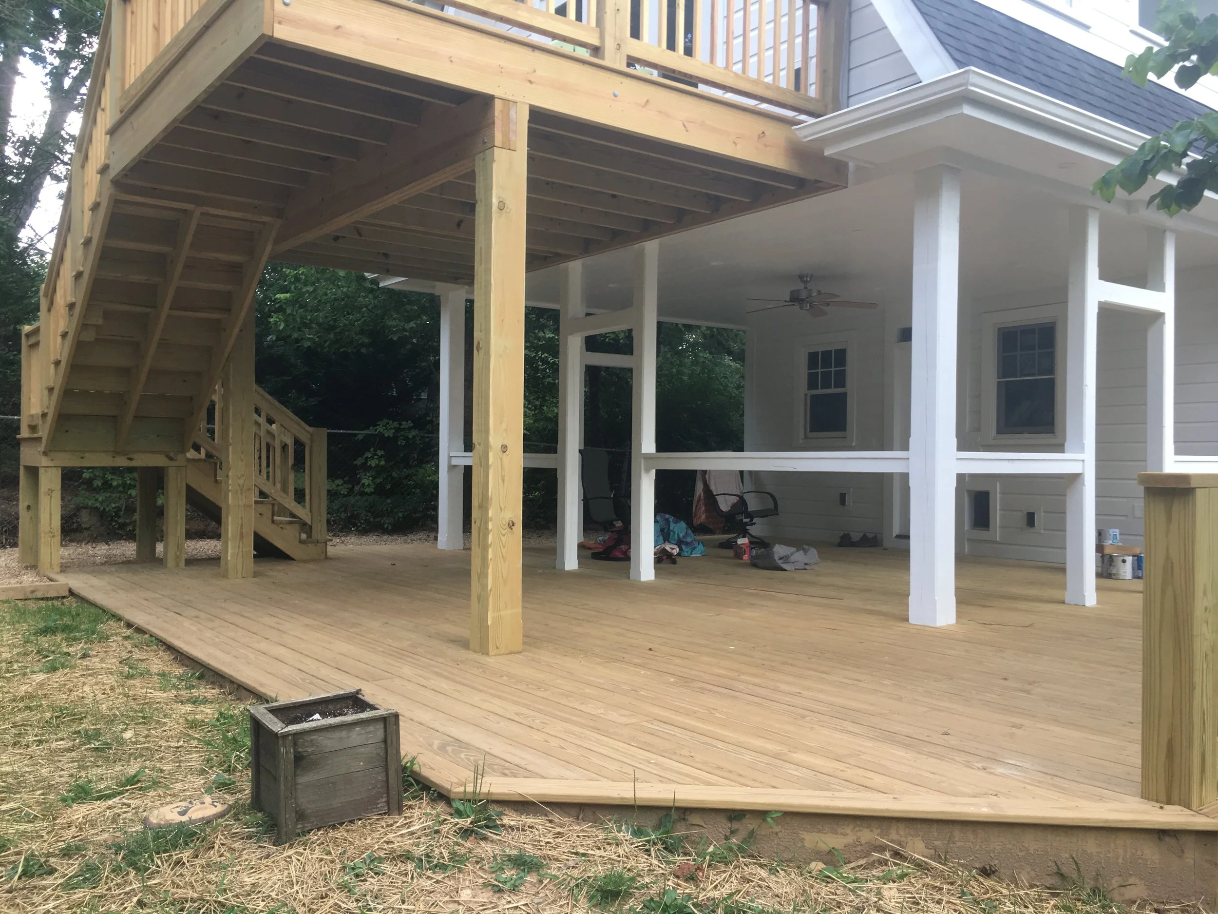 Designed and built by Brookshire Builders, this master suite addition was built on a modest budget with great effects. Complete ground level deck with screened in porch that flows to exterior stair case. Full size upper deck off master suite bedroom provides second entrance to upper level of house. Private balcony off master bedroom, walk-in closet, and full tile walk-in shower bathroom.